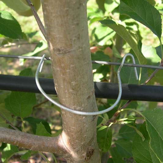 Clips de fijación para frutales | Hierro 60–90 mm y plástico 14,5 cm – Para hilos de 2,2 a 3 mm